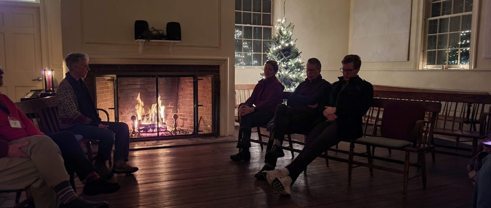 In May, we made a spiral out of pinecones in the field around a big rock; then we took turns walking the spiral to place our stuffed animal on the rock. It was magical, and several adults mentioned how centered the children seemed when they came in at the end of worship. We each chose a “Personal Tree” on the meetinghouse grounds and learned its name and what kind of tree it was. We spent some time sharing thoughts with our personal trees. Ask a child to introduce you to their tree on June 9!